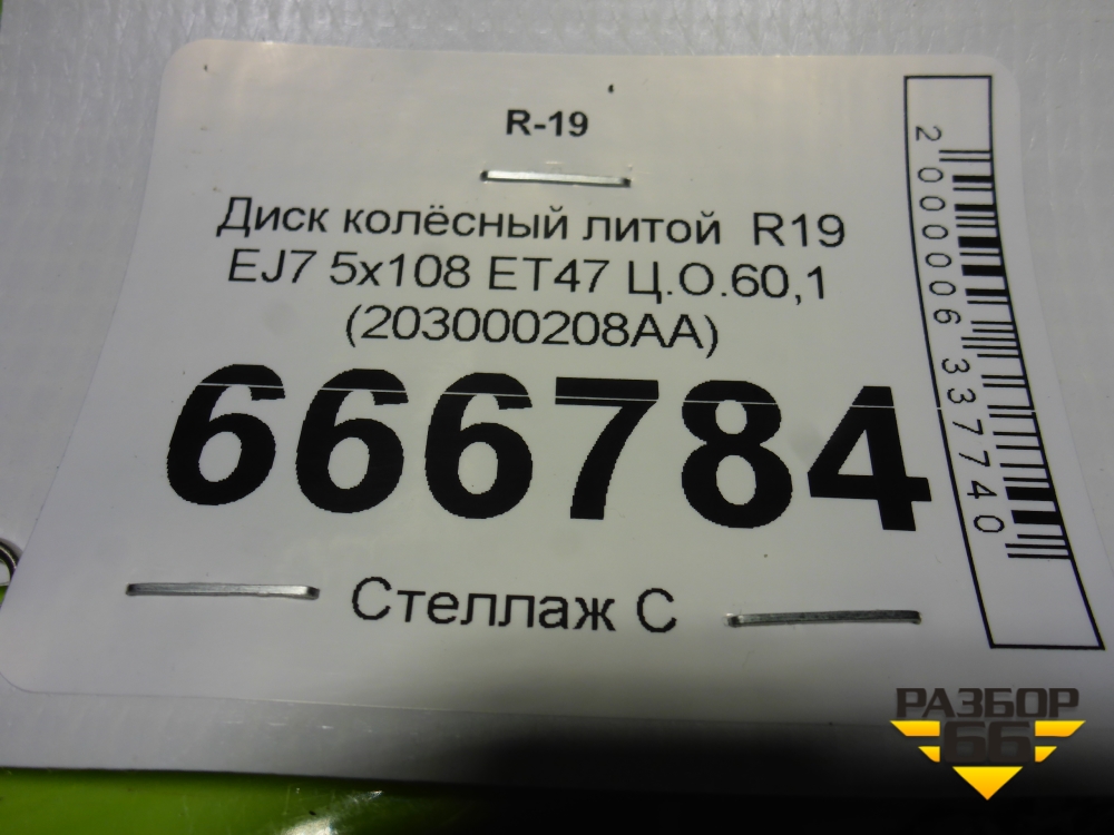 Диск колёсный литой R19 EJ7 5x108 ET47 Ц.О.60,1 (203000208AA) в Краснодаре
