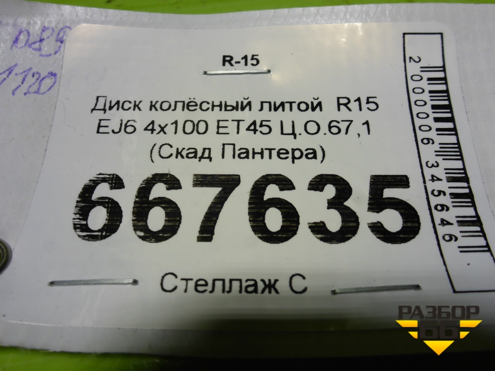 Диск колёсный литой R15 EJ6 4х100 ET45 Ц.О.67,1 (СкадПантера) в Краснодаре