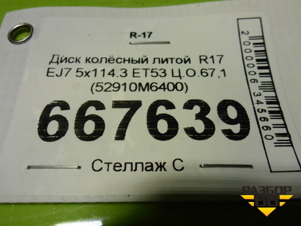 Диск колёсный литой R17 EJ7 5x114.3 ET53 Ц.О.67,1 (52910M6400) в Краснодаре