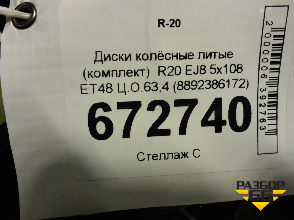 Диски колёсные литые (комплект) R20 EJ8 5x108 ET48 Ц.О.63,4 (8892386172) в Краснодаре