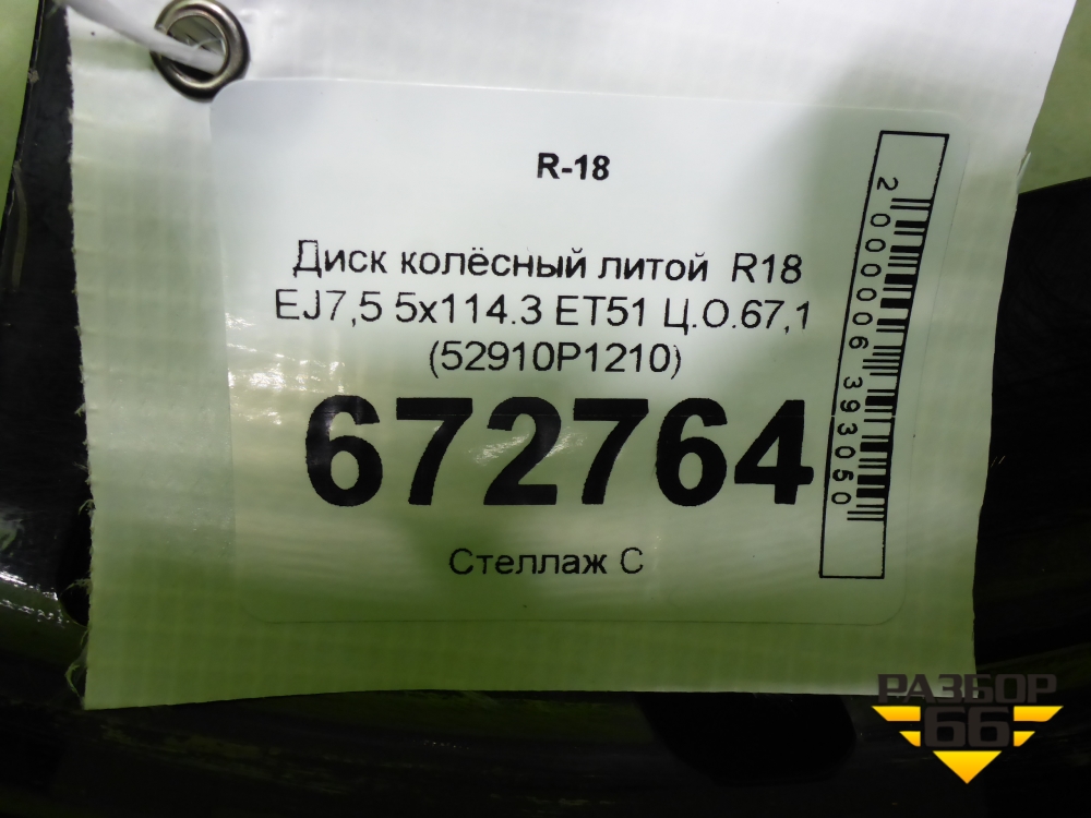 Диск колёсный литой R18 EJ7,5 5x114.3 ET51 Ц.О.67,1 (52910P1210) в Краснодаре