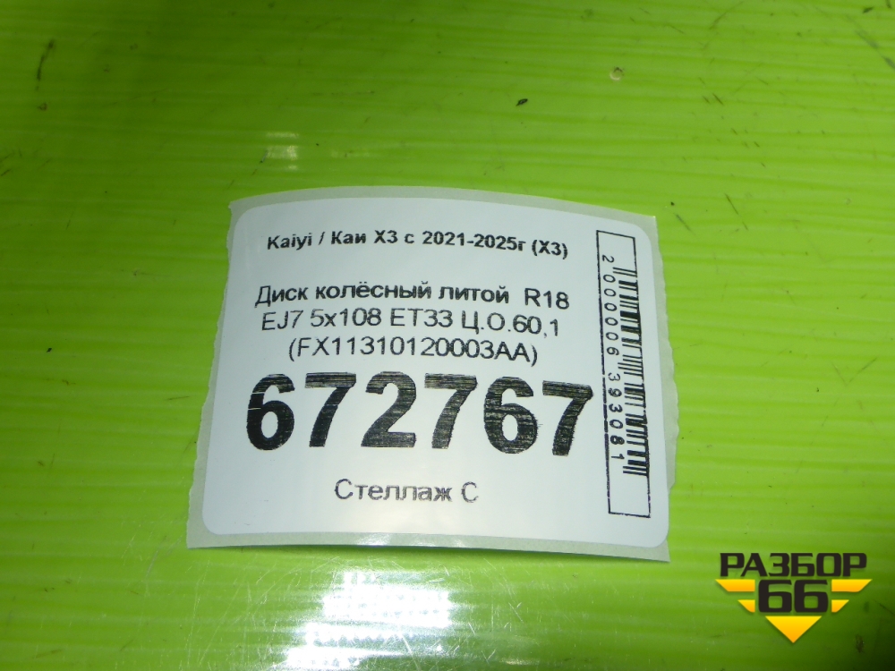 Диск колёсный литой R18 EJ7 5x108 ET33 Ц.О.60,1 (FX11310120003AA) в Краснодаре
