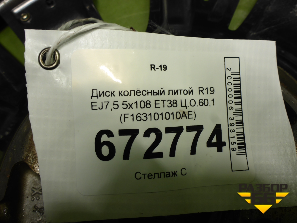 Диск колёсный литой R19 EJ7,5 5x108 ET38 Ц.О.60,1 (F163101010AE) в Краснодаре