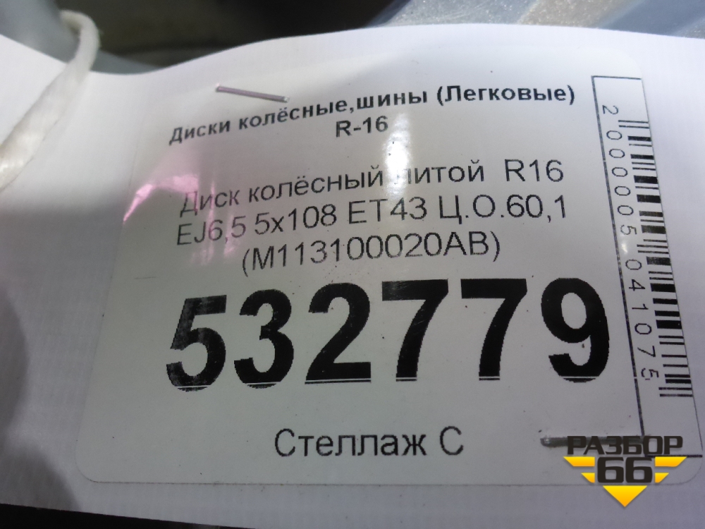 Диск колёсный литой R16 EJ6,5 5x108 ET43 Ц.О.60,1 (M113100020AB) в Краснодаре