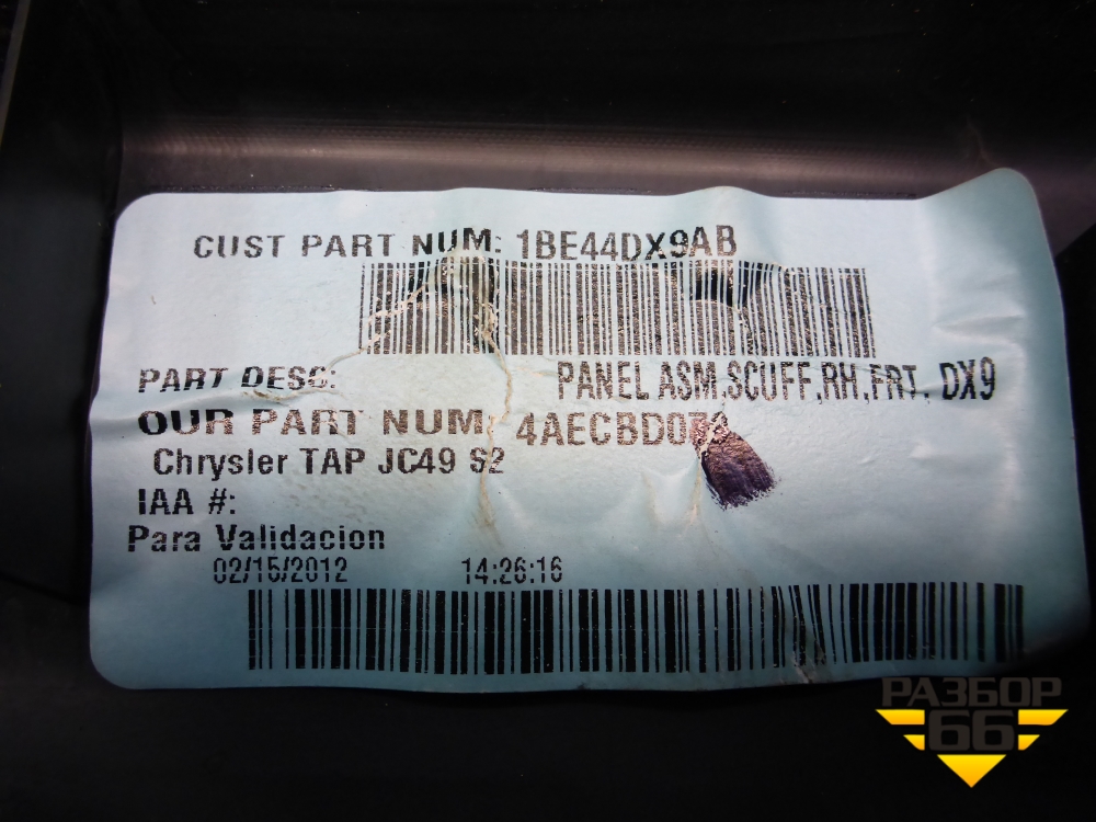 Накладка порога внутренняя переднего правого (1BE44DX9AB) для Dodge Journey с 2009г (Джорни) в Краснодаре