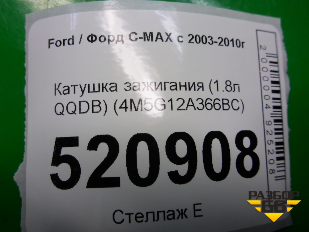 Катушка зажигания (1.8л QQDB) (4M5G12A366BC) для Ford C-MAX с 2003-2010г (ЦМакс 1) в Краснодаре
