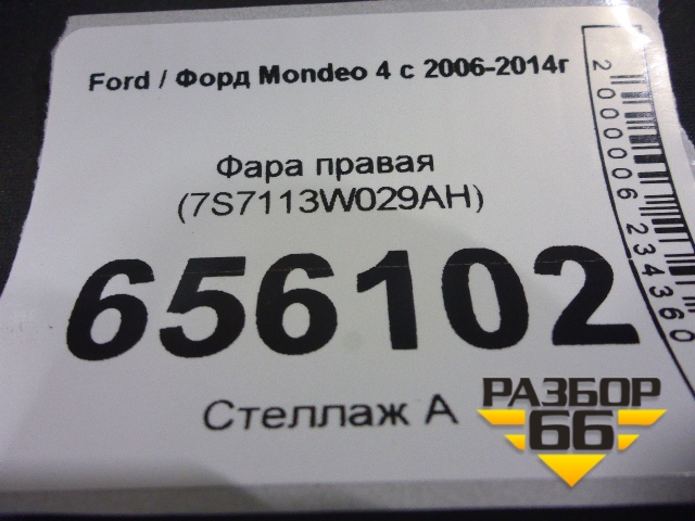 Фара правая (7S7113W029AH) для Ford Mondeo 4 с 2006-2014г (Мондео) в Краснодаре