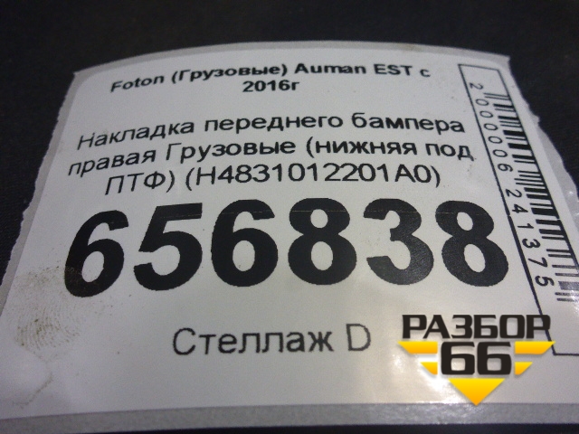 Накладка переднего бампера правая (нижняя под ПТФ) (H4831012201A0) для Foton Auman EST с 2016г (Ауман) в Краснодаре
