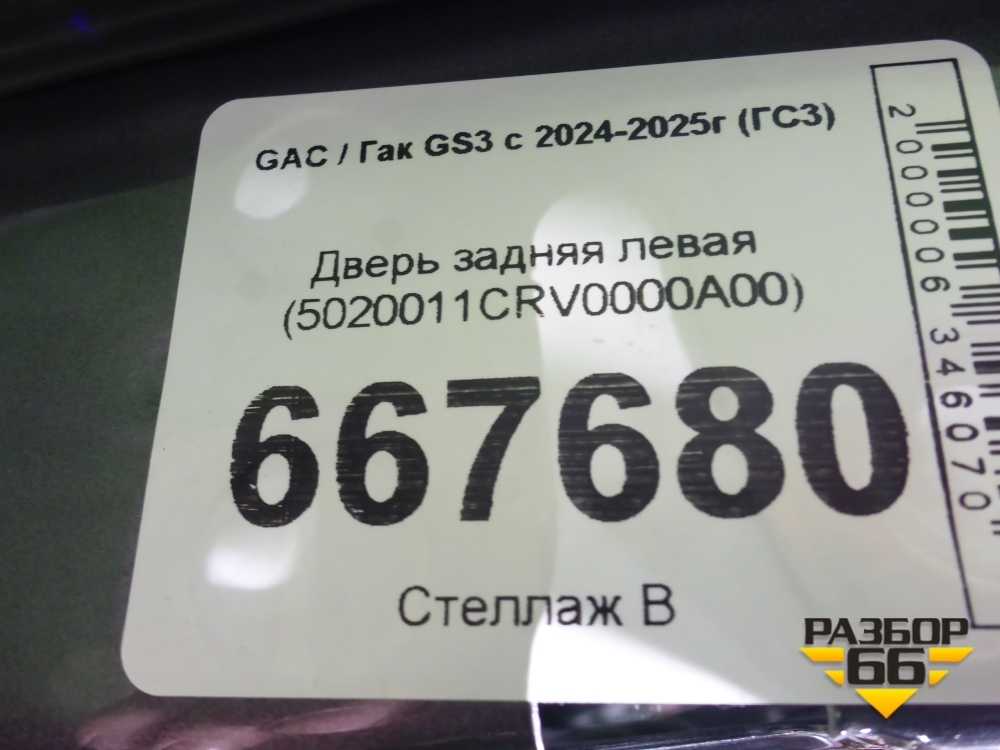Дверь задняя левая (5020011CRV0000A00) для GAC GS3 с 2024-2025г (ГС3) в Краснодаре