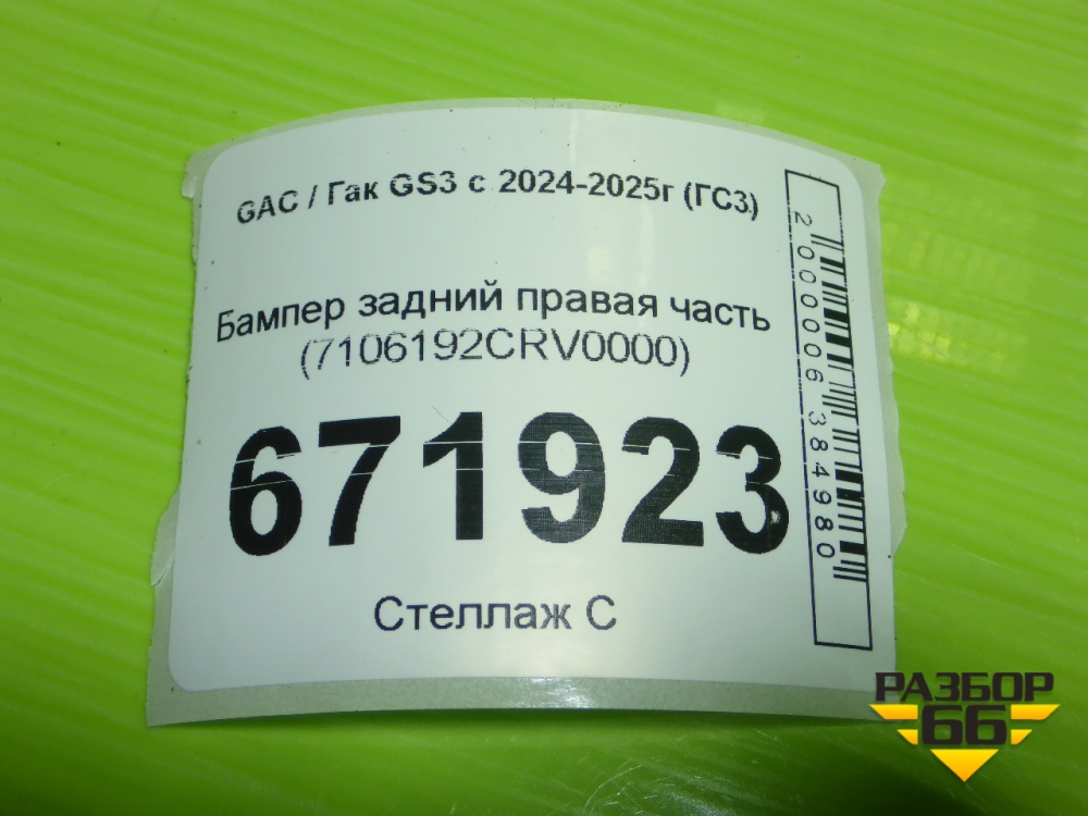 Бампер задний правая часть (7106192CRV0000) для GAC GS3 с 2024-2025г (ГС3) в Краснодаре