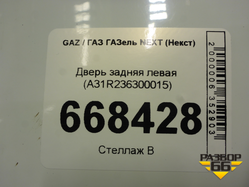 Дверь задняя левая (A31R236300015) для GAZ ГАЗель NEXT (Некст) в Краснодаре