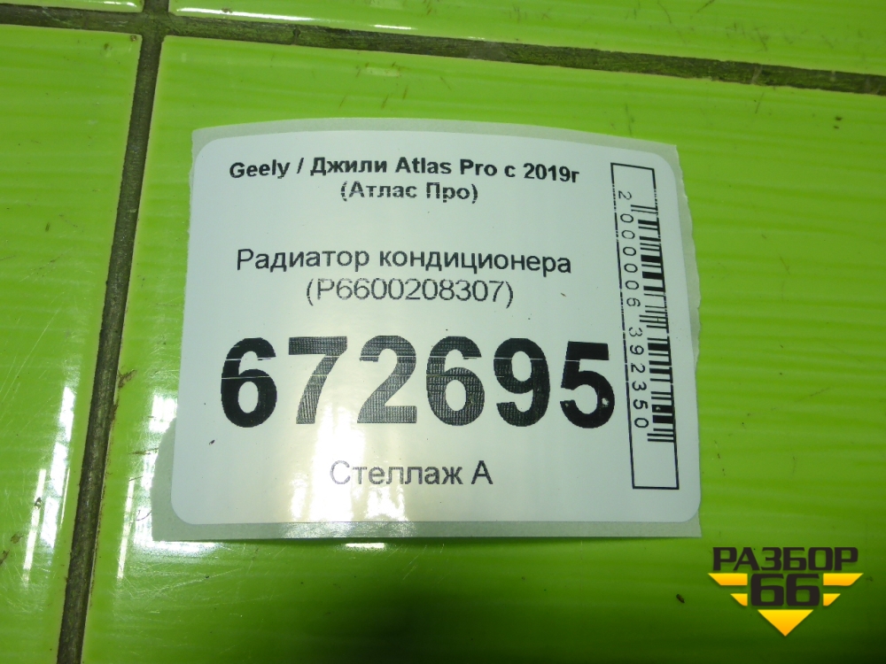 Радиатор кондиционера (P6600208307) для Geely Atlas Pro с 2019г (Атлас Про) в Краснодаре