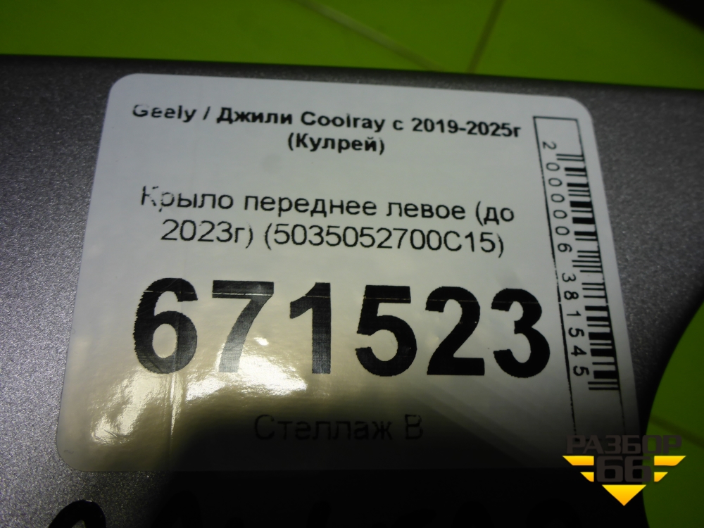 Крыло переднее левое (до 2023г) (5035052700C15) для Geely Coolray с 2019-2025г (Кулрей) в Краснодаре