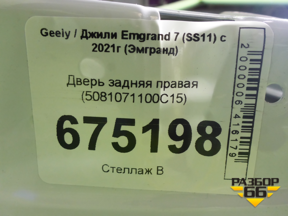 Дверь задняя правая (5081071100C15) для Geely Emgrand 7 (SS11) с 2021г (Эмгранд) в Краснодаре