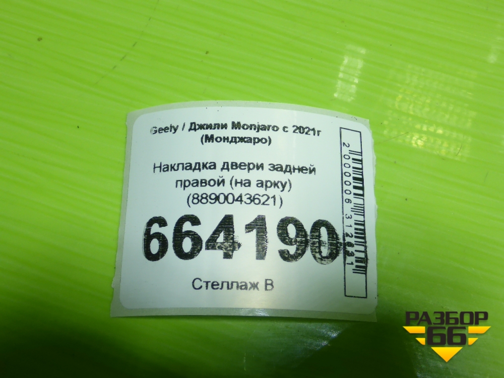 Накладка двери задней правой (на арку) (8890043621) для Geely Monjaro с 2021г (Монджаро) в Краснодаре