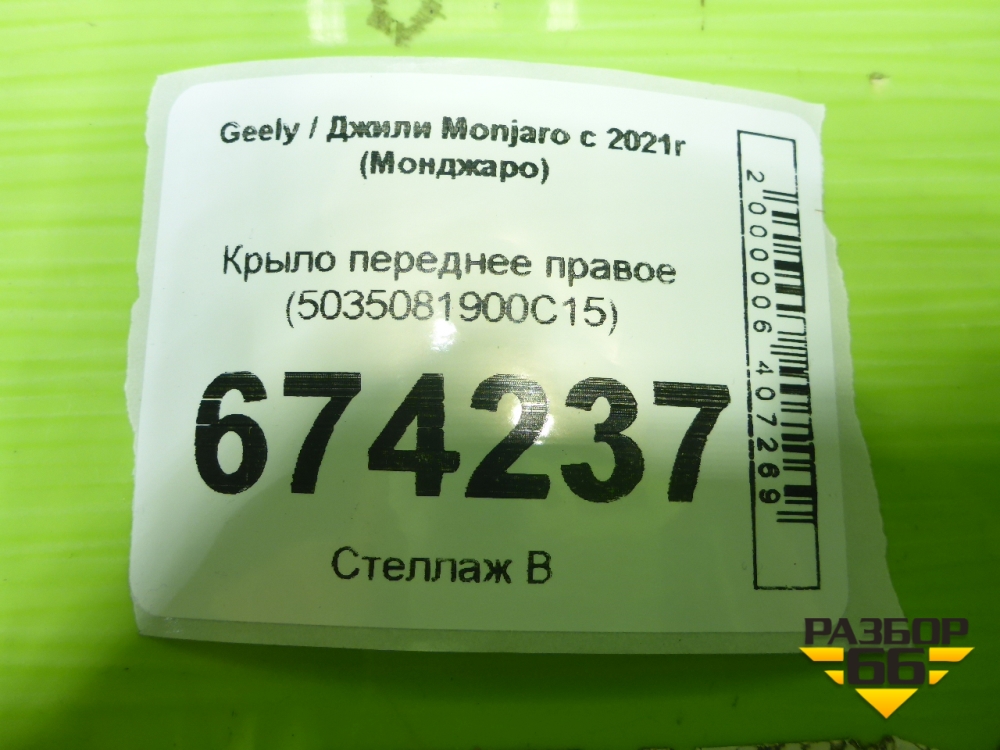 Крыло переднее правое (5035081900С15) для Geely Monjaro с 2021г (Монджаро) в Краснодаре