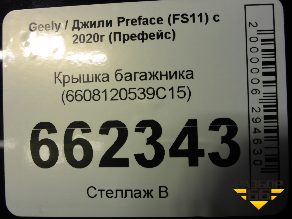Крышка багажника (6608120539C15) для Geely Preface (FS11) с 2020г (Префейс) в Краснодаре