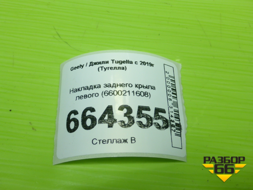 Накладка заднего крыла левого (6600211608) для Geely Tugella с 2019г (Тугелла) в Краснодаре