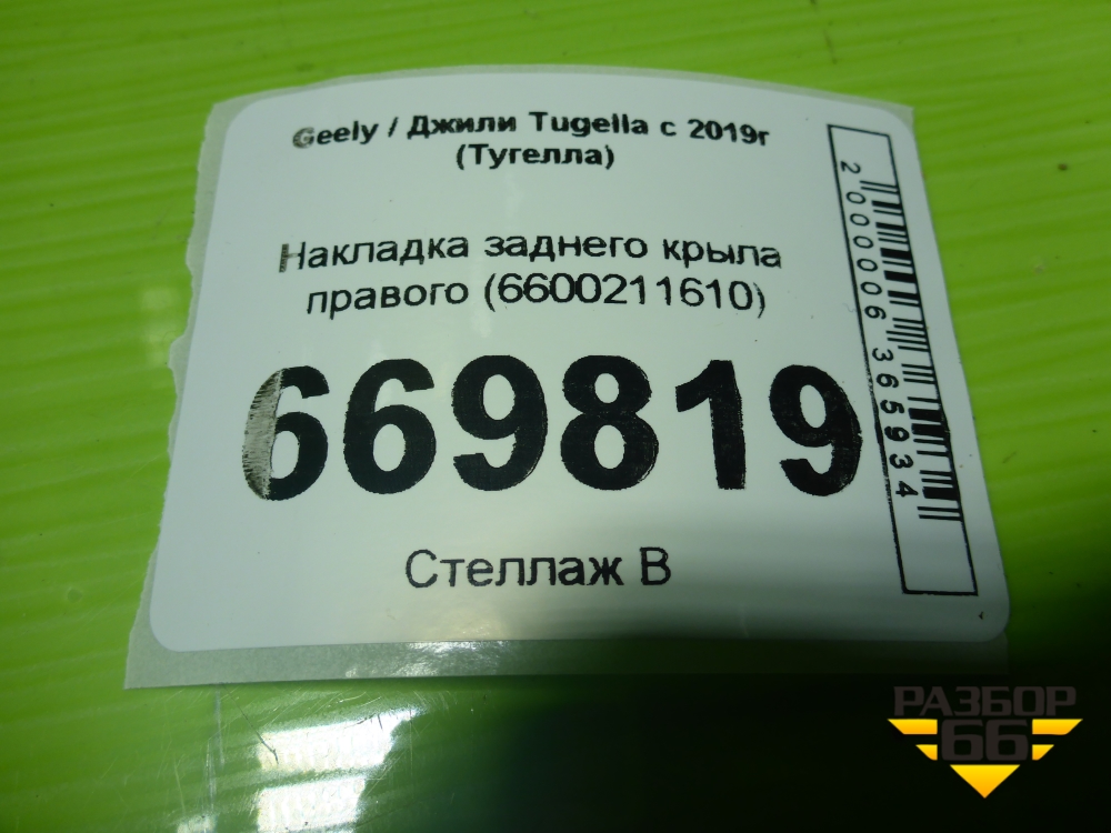Накладка заднего крыла правого (6600211610) для Geely Tugella с 2019г (Тугелла) в Краснодаре