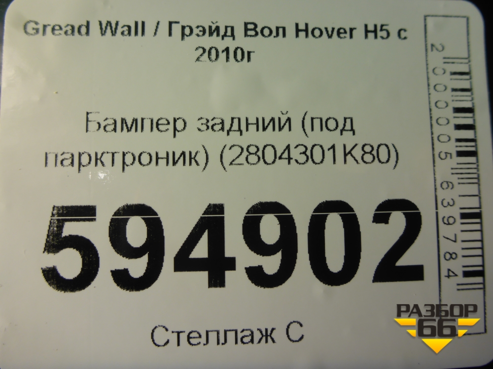Бампер задний (под парктроник) (2804301K80) для Great Wall Hover H5 с 2010г (Ховер) в Краснодаре