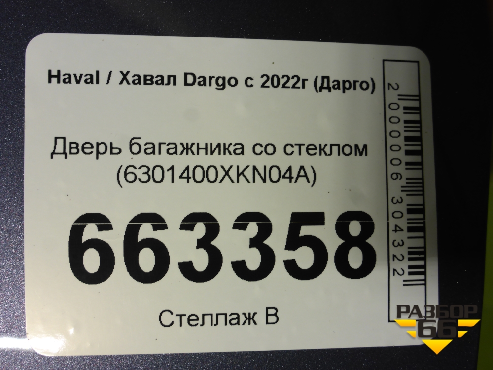Дверь багажника со стеклом (6301400XKN04A) для Haval Dargo с 2022г (Дарго) в Краснодаре