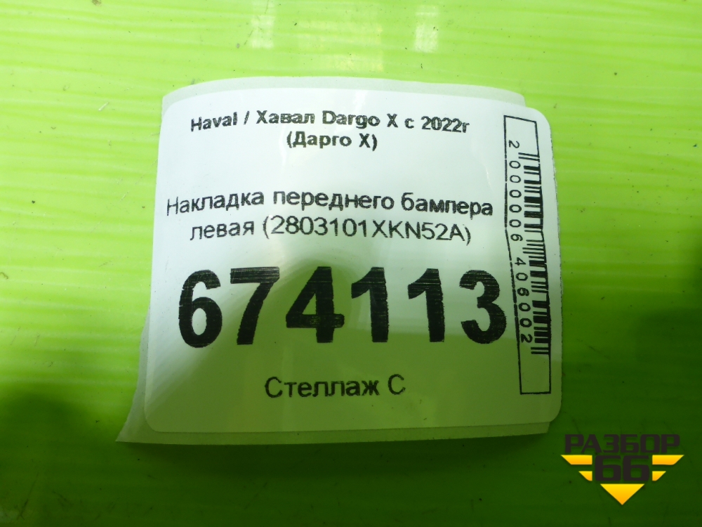 Накладка переднего бампера левая (2803101XKN52A) для Haval Dargo X с 2022г (Дарго Х) в Краснодаре