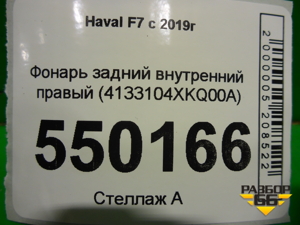 Фонарь задний внутренний правый (4133104XKQ00A) для Haval F7 с 2019г (Ф7) в Краснодаре