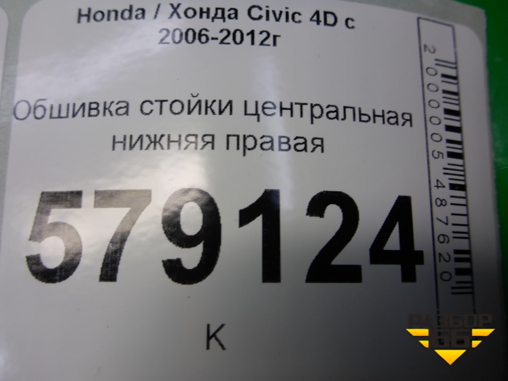 Обшивка стойки центральная нижняя правая (84121SNB) для Honda Civic 4D с 2006-2012г (Цивик) в Краснодаре