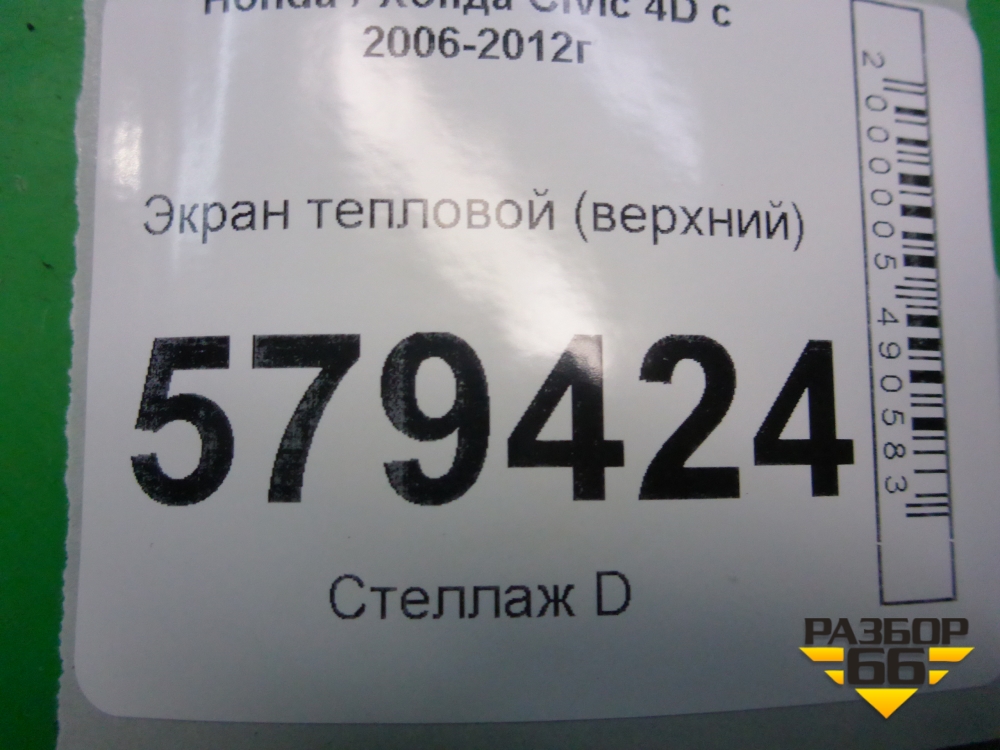 Экран тепловой (верхний) для Honda Civic 4D с 2006-2012г (Цивик) в Краснодаре