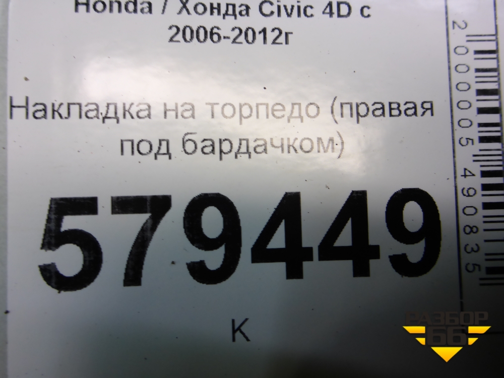 Накладка на торпедо (правая под бардачком) (77345SNA) для Honda Civic 4D с 2006-2012г (Цивик) в Краснодаре