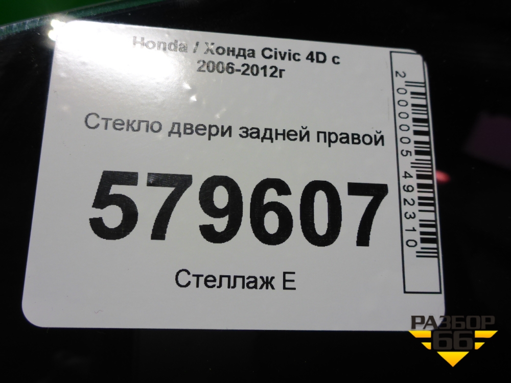 Стекло двери задней правой (2010г) для Honda Civic 4D с 2006-2012г (Цивик) в Краснодаре