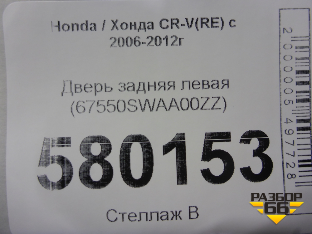 Дверь задняя левая (67550SWAA00ZZ) для Honda CR-V(RE) с 2006-2012г (ЦРВ СРВ) в Краснодаре