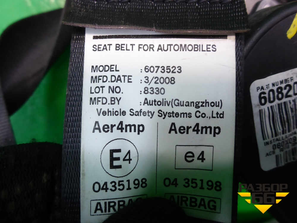 Ремень безопасности передний правый с пиропатроном (608200200A) для Honda CR-V(RE) с 2006-2012г (ЦРВ СРВ) в Краснодаре