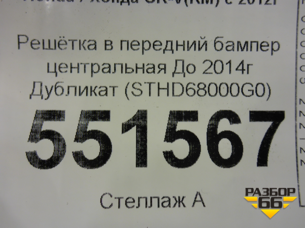 Решетка в передний бампер центральная До 2014г Дубликат (STHD68000G0) для Honda CR-V(RM) с 2012г (ЦРВ СРВ) в Краснодаре
