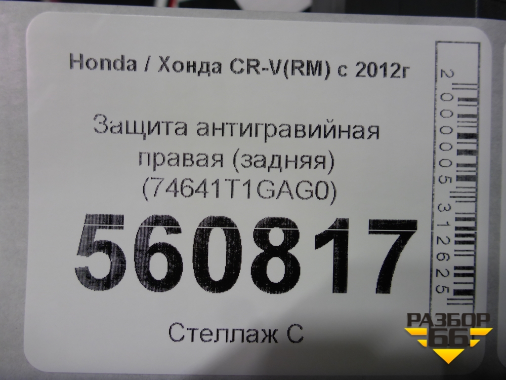 Защита антигравийная правая (задняя) (74641T1GAG0) для Honda CR-V(RM) с 2012г (ЦРВ СРВ) в Краснодаре