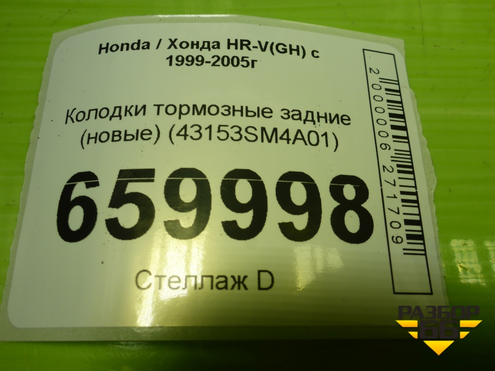Колодки тормозные задние (новые) (43153SM4A01) для Honda HR-V(GH) с 1999-2005г (АшРВ) в Краснодаре