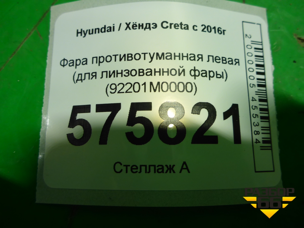 Фара противотуманная левая (для линзованной фары) (92201M0000) для Hyundai Creta с 2016г (Крета) в Краснодаре