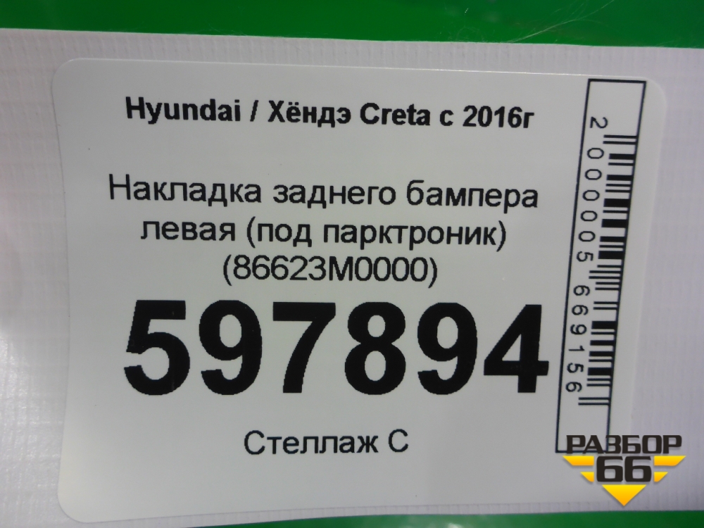 Накладка заднего бампера левая (под парктроник) (86623M0000) для Hyundai Creta с 2016г (Крета) в Краснодаре