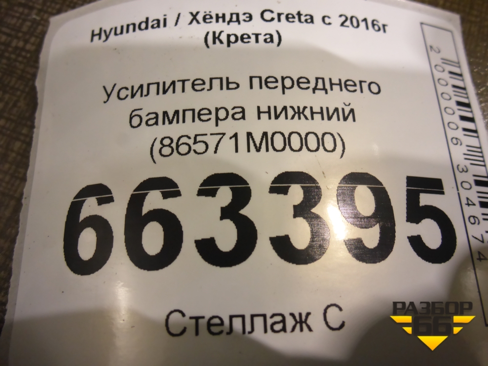 Усилитель переднего бампера нижний (86571M0000) для Hyundai Creta с 2016-2021г (Крета) в Краснодаре