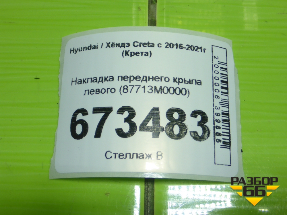 Накладка переднего крыла левого (87713M0000) для Hyundai Creta с 2016-2021г (Крета) в Краснодаре