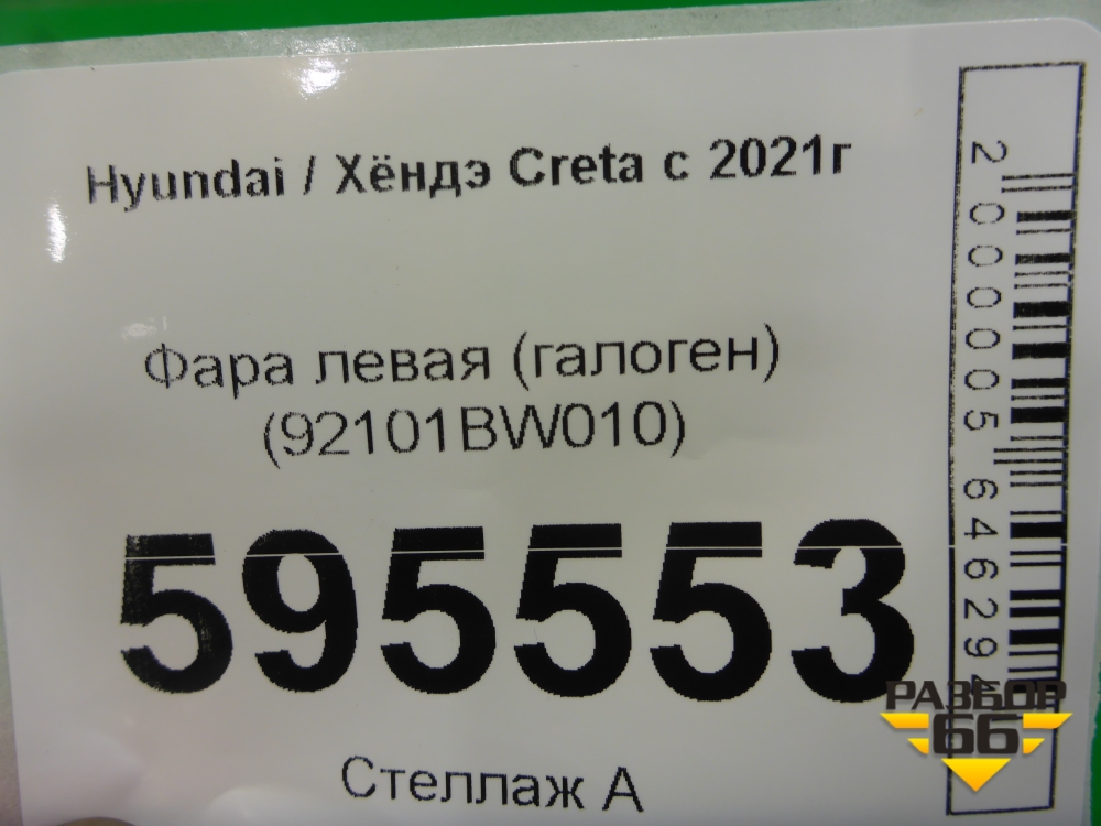 Фара левая (галоген) (92101BW010) для Hyundai Creta с 2021г (Крета) в Краснодаре