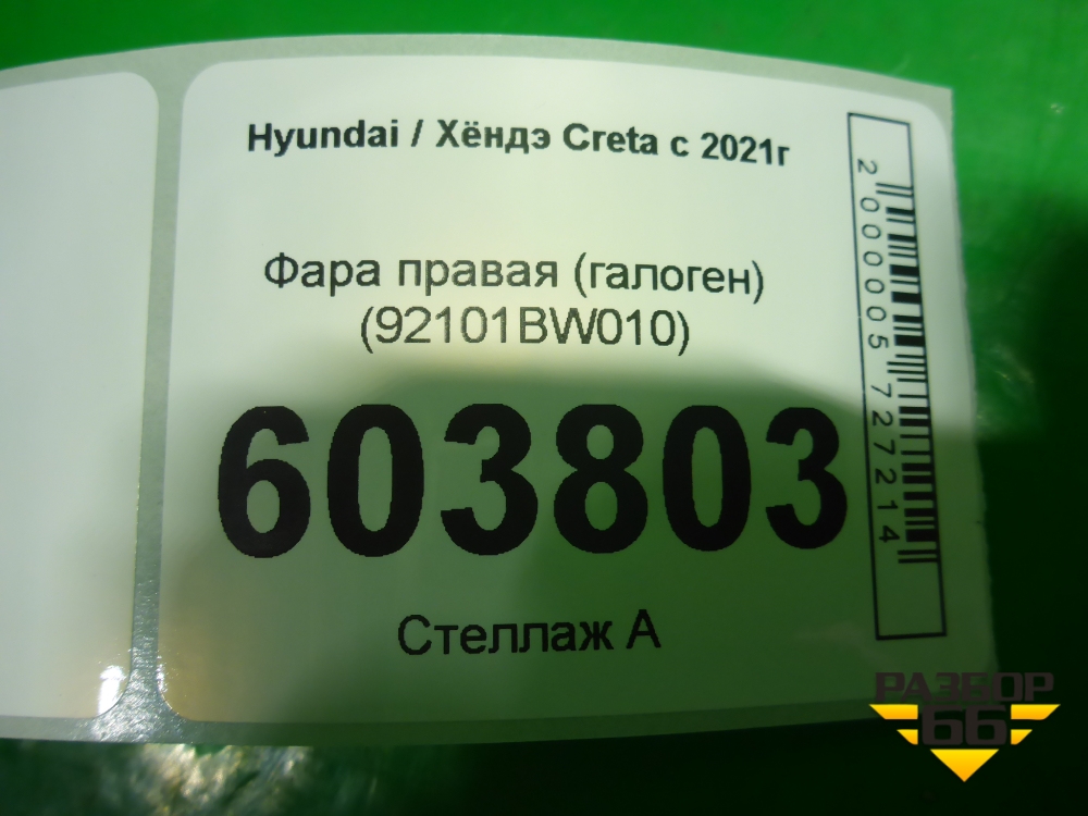Фара правая (галоген) (92101BW010) для Hyundai Creta с 2021г (Крета) в Краснодаре