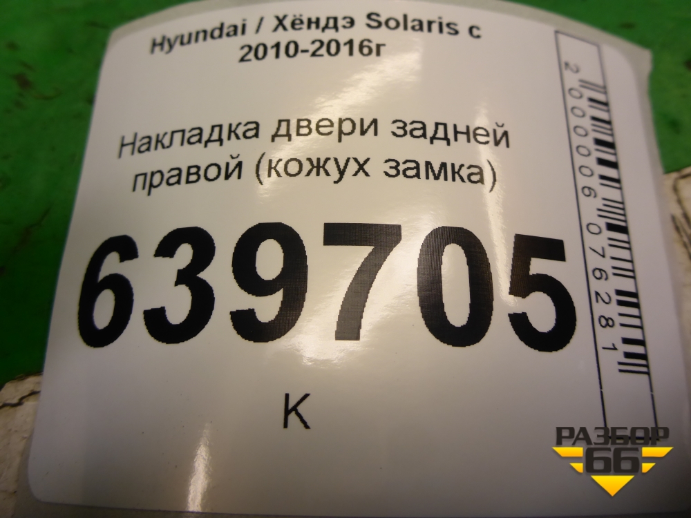 Накладка двери задней правой (кожух замка) (814771R000) для Hyundai Solaris с 2010-2016г (Солярис) в Краснодаре