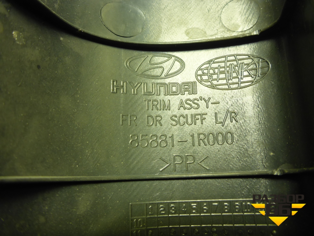 Накладка порога внутренняя переднего правого (858811R000) для Hyundai Solaris с 2010-2016г (Солярис) в Краснодаре