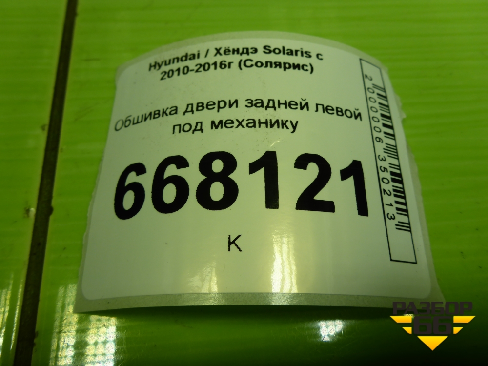 Обшивка двери задней левой под механику (седан) (833504L300) для Hyundai Solaris с 2010-2016г (Солярис) в Краснодаре