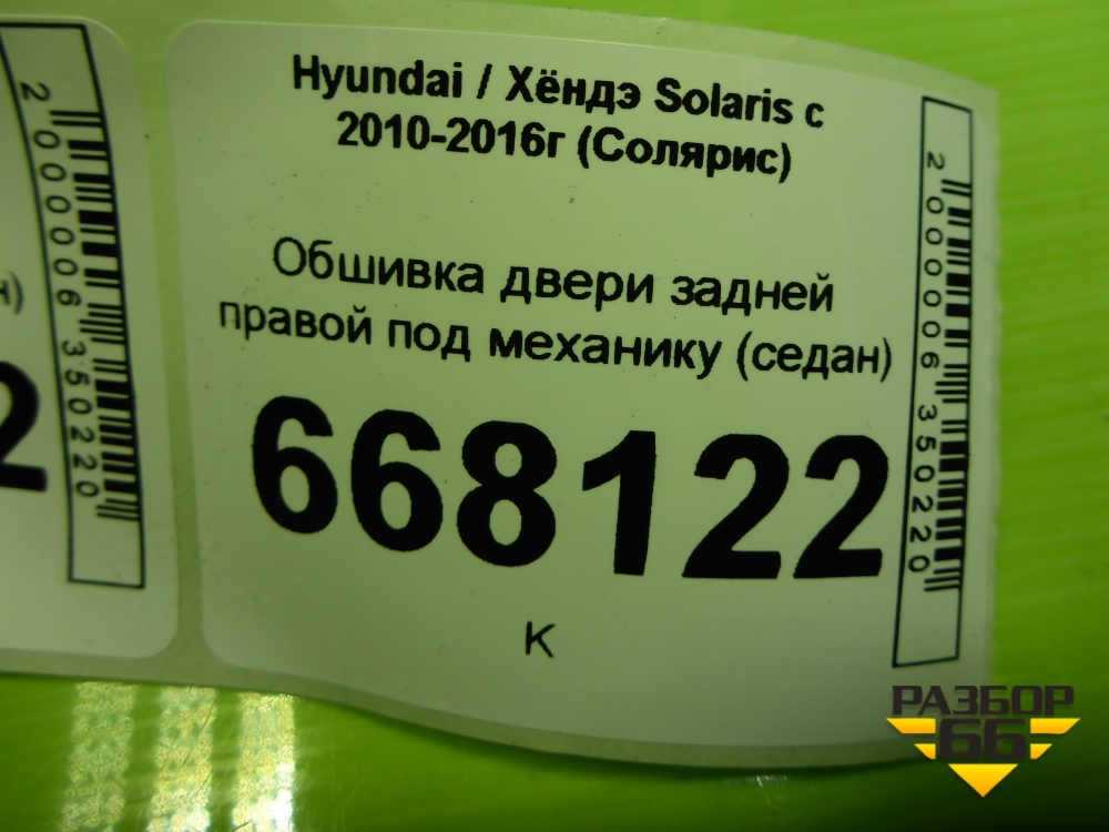 Обшивка двери задней правой под механику (седан) (833604L300) для Hyundai Solaris с 2010-2016г (Солярис) в Краснодаре