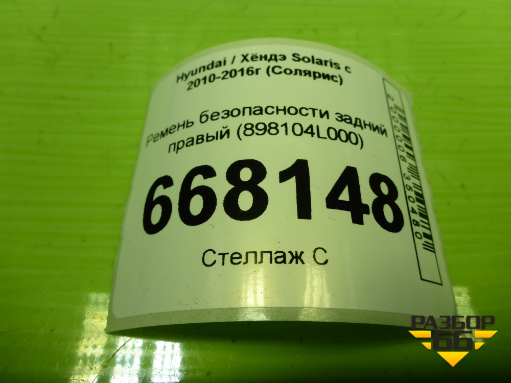 Ремень безопасности задний правый (898104L000) для Hyundai Solaris с 2010-2016г (Солярис) в Краснодаре