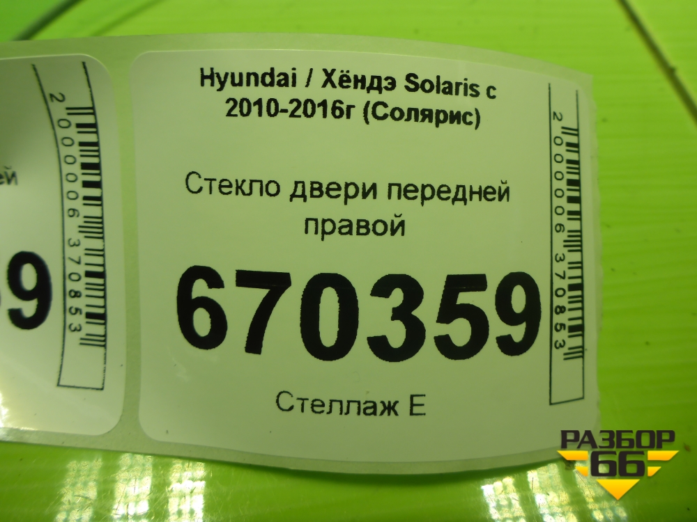 Стекло двери передней правой для Hyundai Solaris с 2010-2016г (Солярис) в Краснодаре
