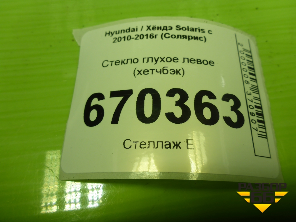 Стекло глухое левое (хетчбэк) для Hyundai Solaris с 2010-2016г (Солярис) в Краснодаре