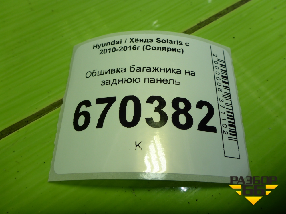 Обшивка багажника на заднюю панель (хетчбэк) (857711R500) для Hyundai Solaris с 2010-2016г (Солярис) в Краснодаре